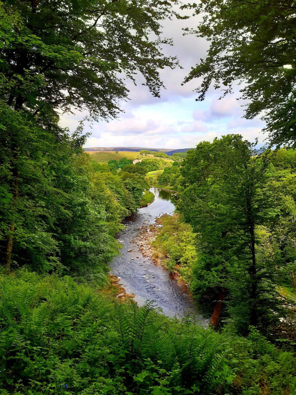 The River Wharfe with a distant view of Barden Tower. 1808. Below 2021.