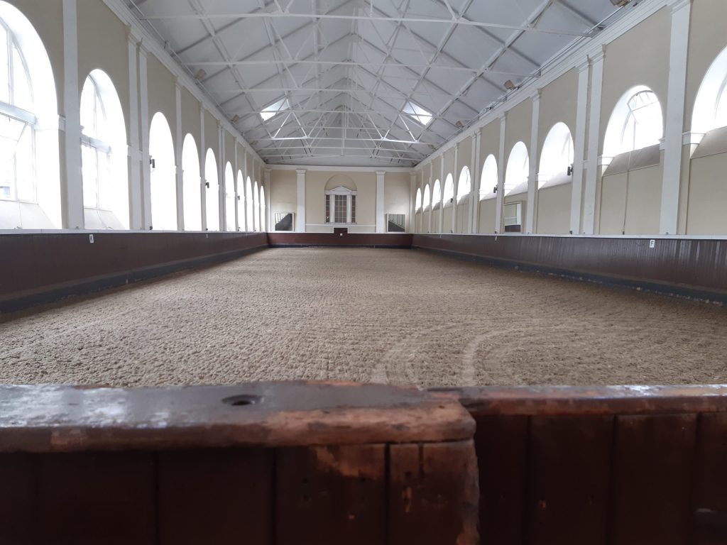 Buckingham Palace: public entry to the Garden and Palace is through the Royal Mews, now almost empty of horses.