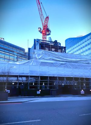 Stonecutter Street led down to Wren’s canalised Fleet and was known as Stone Cutters Streete. Just to its south was St Bridget’s Churchyard and both are featured on the Ogilby and Morgan map of 1676. The churchyard may have been an overspill burial ground for the main St Bridget’s Church (St Bride’s) on Fleet Street. St Bride Street, not yet constructed, clearly takes its name from this association.