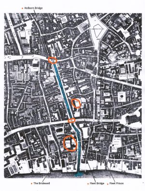 ‘Fleet in the City: Part 1 – The Valley of the Fleet’ follows the rivers City of London route – formerly a navigable, bustling waterway, still recognisable as the ‘valley of the Fleet’. I’ve chosen to highlight those places which have an association with the Fleet or whose story owes itself, in some way, directly to this lost river.
